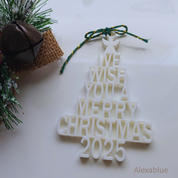 We Wish a Merry Christmas 2025|ホワイトレター 3Dプリント クリスマスツリーオーナメント|モノトーン・シックインテリア