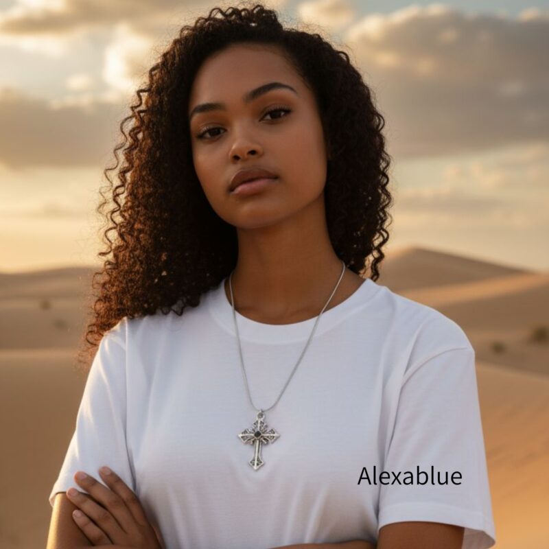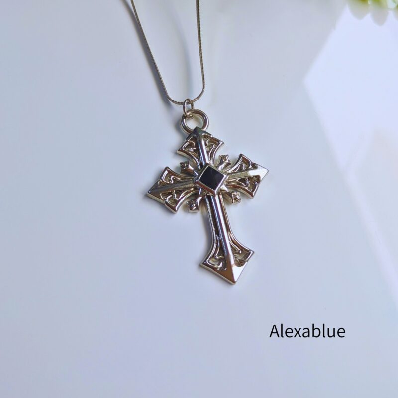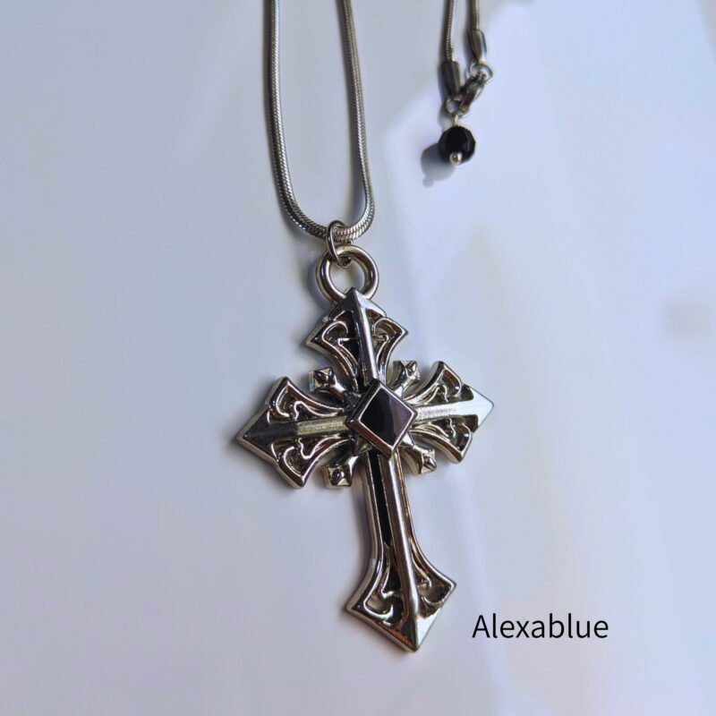 #クロスネックレス #オニキスアクセサリー #ユニセックスジュエリー #ステンレスネックレス #ペアアクセサリー