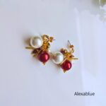 深紅のガーネットとレッドパール、やわらかに輝く淡水パールが上品に調和し、