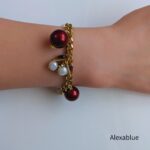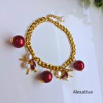 ブレスレットは優しく輝くレッドパールと淡水パールを組み合わせ、