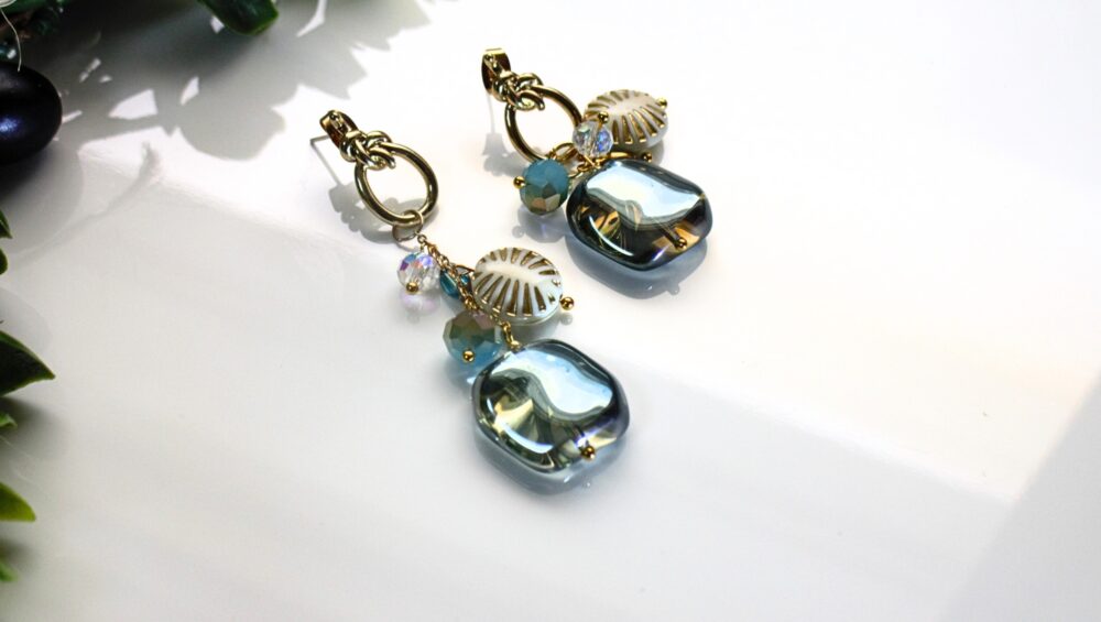 存在感のある大きめのブルーオーロラビーズを使用し、アシンメトリーのデザインがおしゃれな大ぶりピアスです。 ユニークで華やかな印象を与え、どんなスタイルにもマッチしますので、デイリーユースはもちろん 特別な日のアクセサリー … 続きを読む ブルーオーロラビーズ アシンメトリーピアス 大ぶりピアス