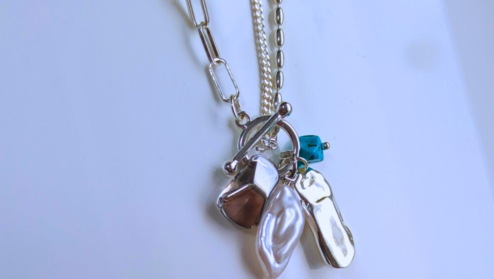 透明感あふれるオーロラビーズと、メタリックな輝きがアクセントになったアシンメトリーネックレス。 鮮やかなターコイズのブルーと、上品なバロックパールビーズを組み合わせることで、大人カジュアルな雰囲気に仕上げました。 光の角 … 続きを読む Aurora Blue Harmony|ターコイズ × バロックパールビーズ アシンメトリーネックレス