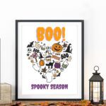 お部屋にハロウィンの魔法を添える、かわいいパンプキンとおばけのイラストポスター。