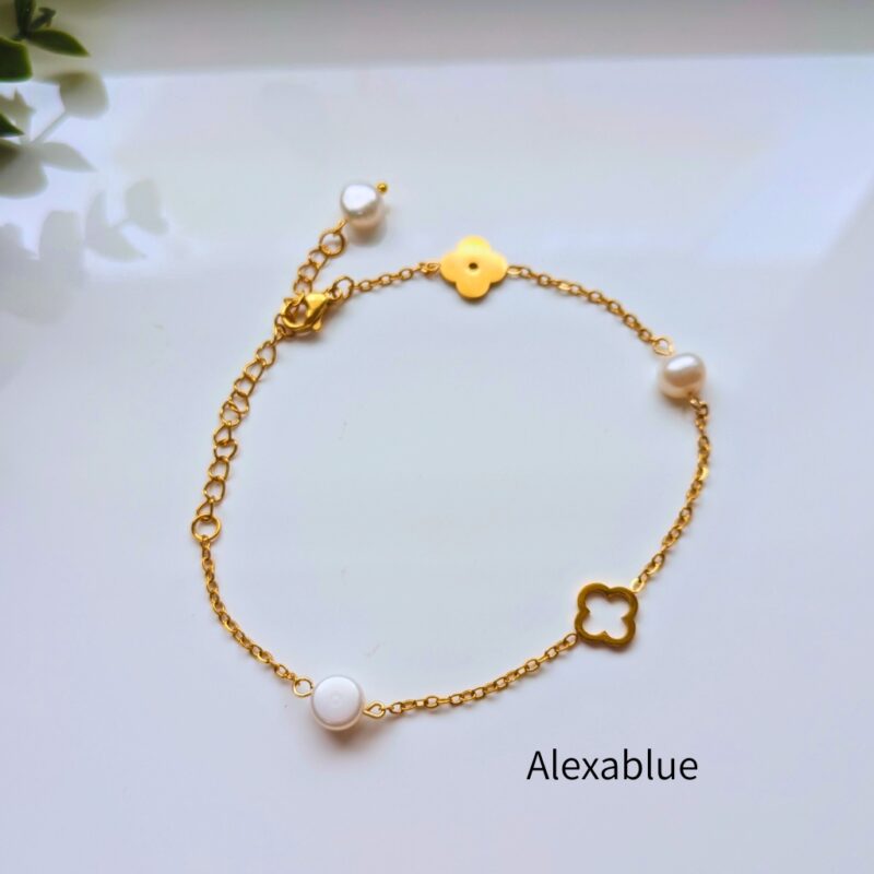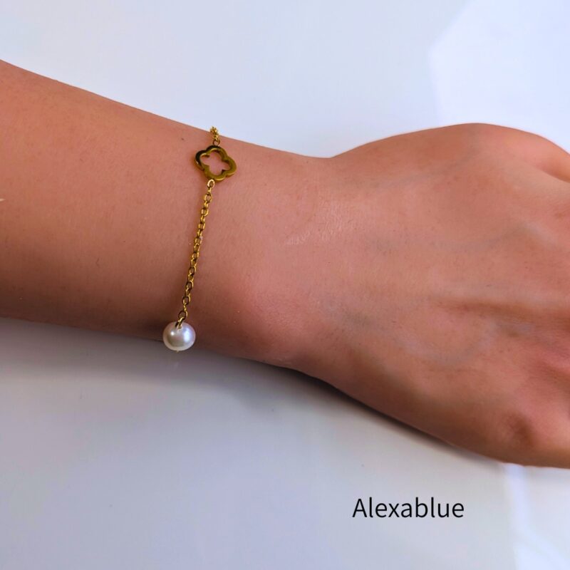 #淡水パールブレスレット #フラワーチャーム #ステンレスジュエリー #金属アレルギー対応 #Alexablueジュエリー