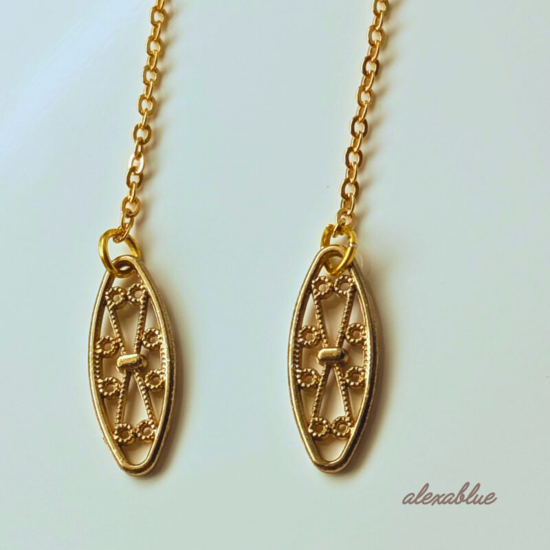 チェーンロング透かしピアス|揺れる上品デザイン|軽やかアクセサリー|K14gf,K10変更可|送料無料 |無料ラッピング対応
