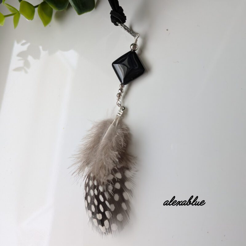 素材:オニキス(天然石)、フェザー、スエードコード